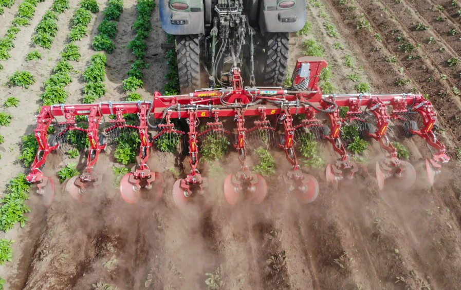 Meziřádkový kultivátor s pasivně poháněnými hvězdicovými disky.