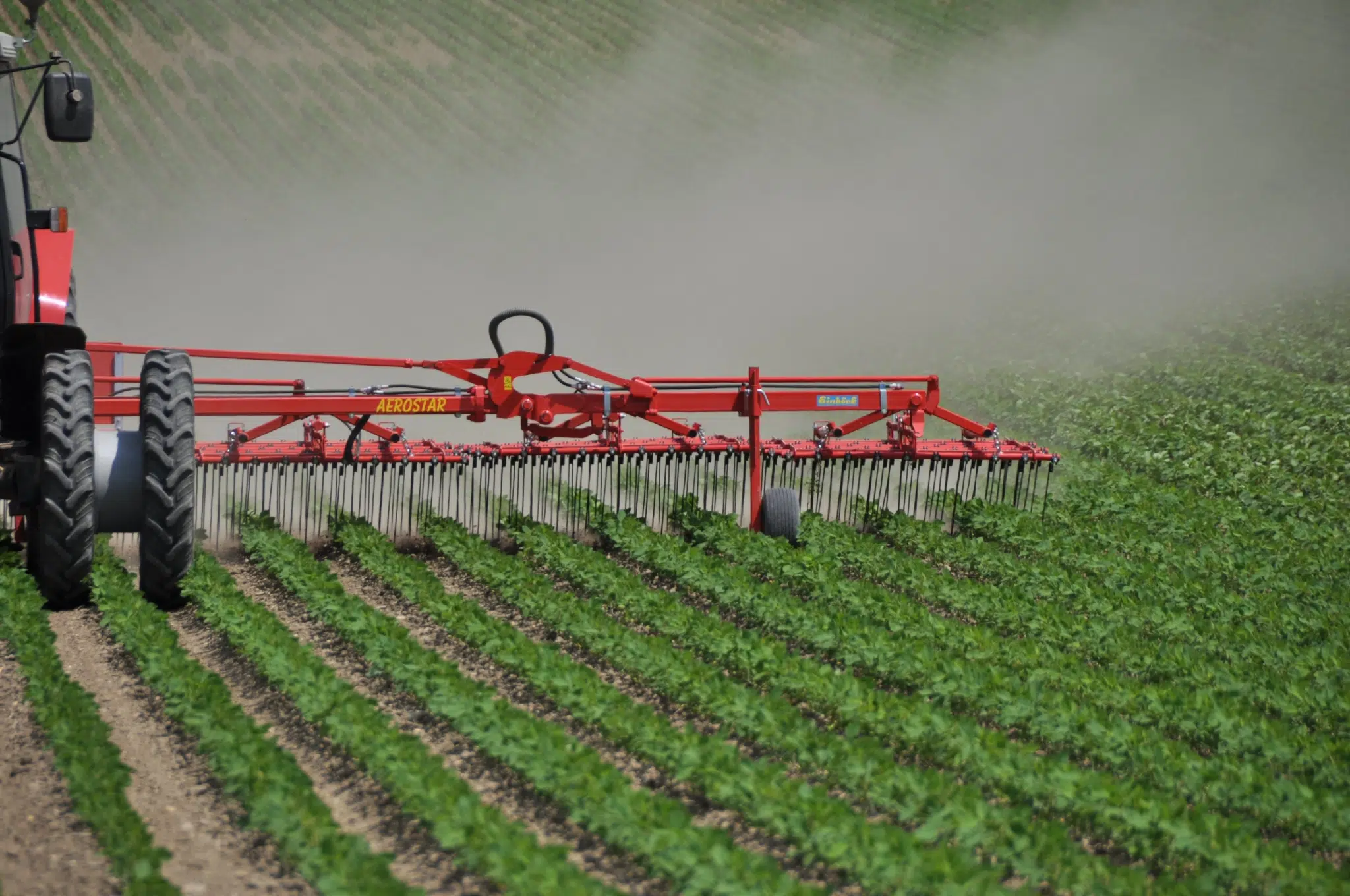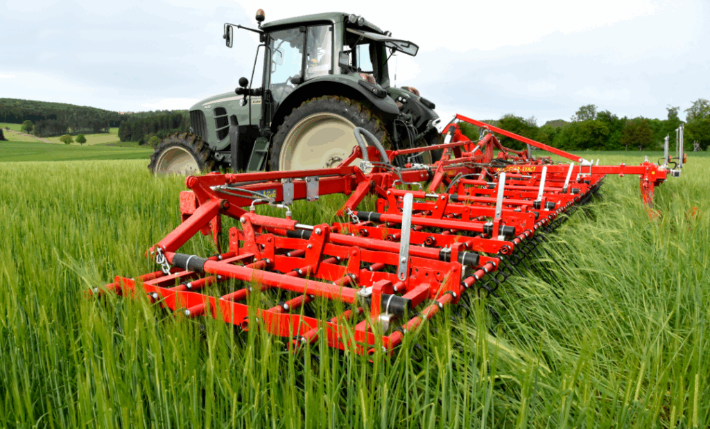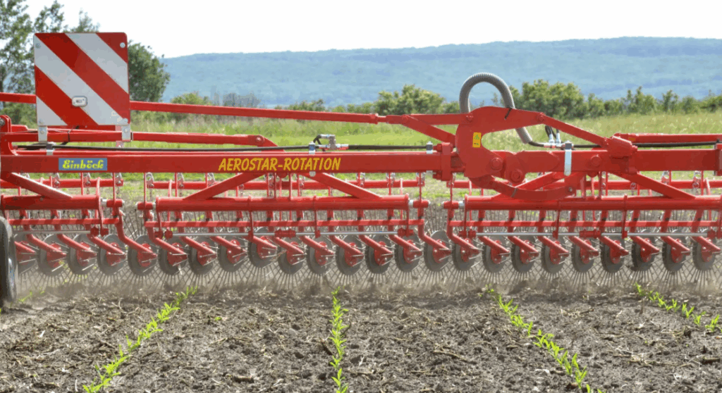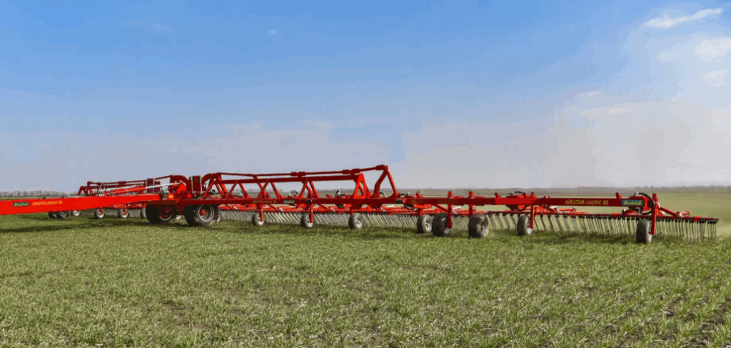 Plecí rotační prutové brány v neseném provedení s pevným rámem (pracovní záběry 1,5 a 3 m) a sklopném provedení rámu (pracovní záběry 4,5 – 18 m).